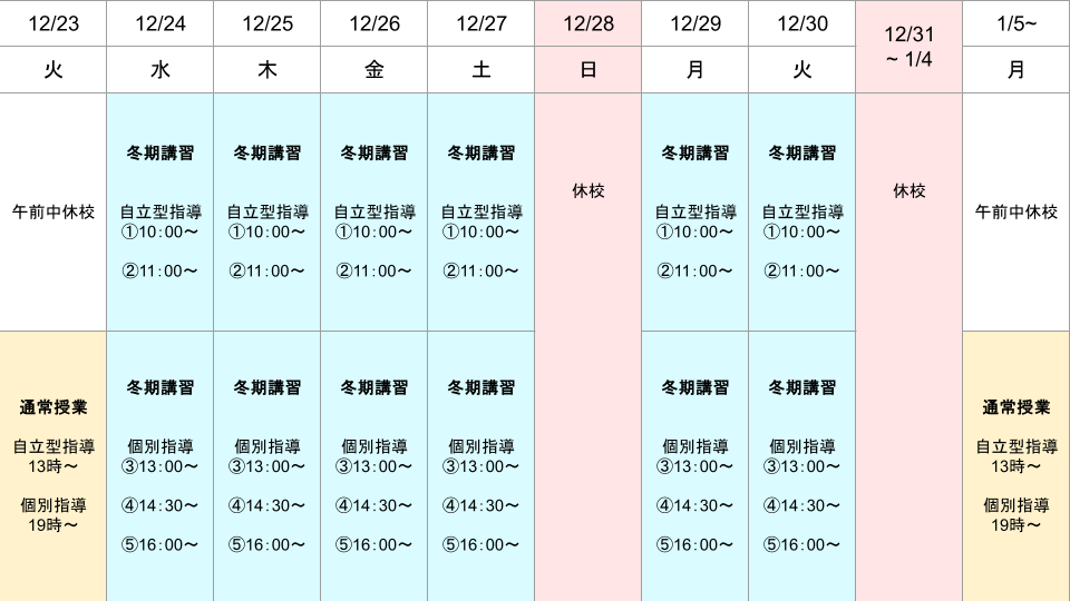 普段の授業に加えてこの機会に弱点克服や今年の復習、受験対策などにいかがでしょうか?